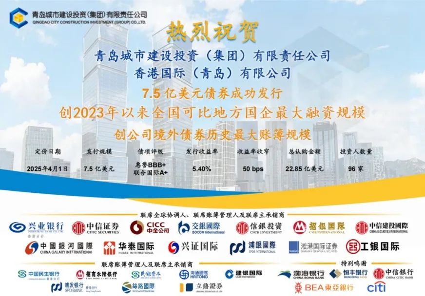 青岛城投7.5亿美元债券成功发行