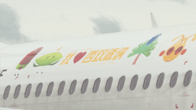 据悉,两架主题飞机机身以喷绘设计融入西双版纳民族文化元素,将千年傣乡文明搬上云霄,展现“雨林秘境 柔情傣乡”的独特魅力。“西双版纳号”以象征探索精神的望天树种子、寓意友好开放的神秘果与跳舞草、代表和谐的亚洲象,以及象征吉祥幸福的绿孔雀为主体设计,搭配“我爱西双版纳”的视觉符号,展现热带雨林的秘境魅力;“景洪号”则以城市IP形象“景景”和“洪洪”为主角,通过载歌载舞的亚洲象与展翅迎宾的绿孔雀组合,传递“黎明之城”的热情好客。未来两架飞机将执飞西双版纳至国内主要城市航线,以及东盟国家享受西双版纳144小时免签政策的国际航线。