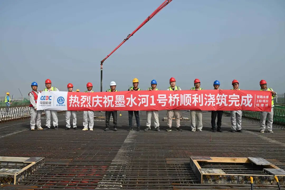 墨水河1#桥是官路水库围坝工程的关键组成部分,兼具交通通行与防洪调蓄功能的特殊性。桥梁的早日建成通车,将对项目周边交通组织、墨水河汛期防洪具有重要意义。今年以来,官路水库公司科学组织、精心谋划,克服了工期紧张、施工工序繁多、河床地质复杂、安全风险高等诸多不利因素,在安全保障与质量管控并重的前提下,通过倒排工期、优化工序、落实昼夜双班施工等举措,高质高效完成了浇筑任务,为提前做好防汛准备赢得了宝贵时间。