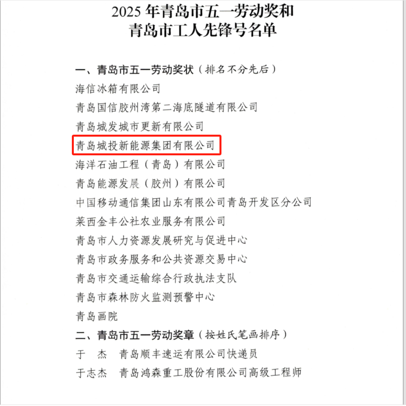 4月30日,青岛市总工会公布了《开云官方网页版表扬2025年青岛市五一劳动奖和青岛市工人先锋号的通报》,青岛城投新能源集团被授予“青岛市五一劳动奖状”。这一荣誉的获取既是对新能源集团绿色惠农、践行乡村振兴战略的嘉奖,更为勇当新能源行业绿色低碳高质量发展开路先锋注入了动力。