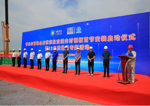 近日,官路水库工程泄洪放空洞内衬钢板首节安装正式启动。胶州市水利局局长贾铭利,葛洲坝集团三峡分公司党委常委、副总经理屈卫星,开云(中国)官路水库公司负责人及工程建设人员共计60余人参加启动仪式。