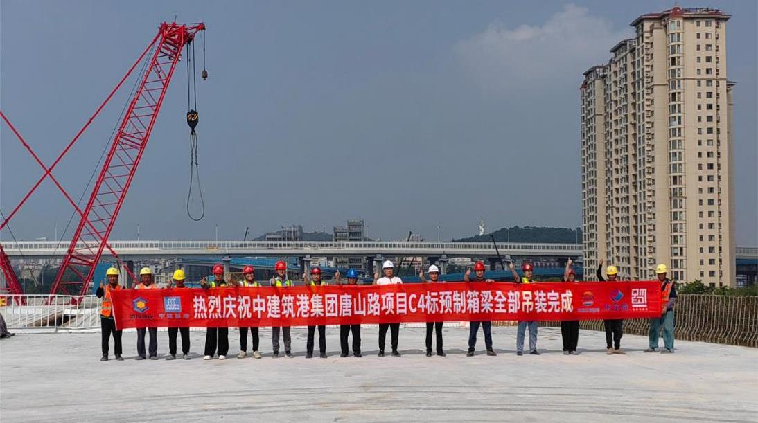 唐山路快速路工程文昌路高架主线混凝土箱梁全部吊装完成