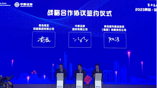 5月12日,由青岛市人民政府主办的2023青岛·全球创投风投大会正式开幕。大会以“创投风投创时代 创新创业创未来——聚力高质量 澎湃新动能”为主题,打造合作共赢的创投风投交流平台,激活高质量发展新动能。开云(中国)应邀参加本次创投风投大会,并在本次会议论坛上与中泰证券签署战略合作协议。城投集团党委委员、副总经理殷淙,中泰证券总经理冯艺东等出席签约仪式,城金集团、创投公司有关负责同志一同参加活动。(图为签约